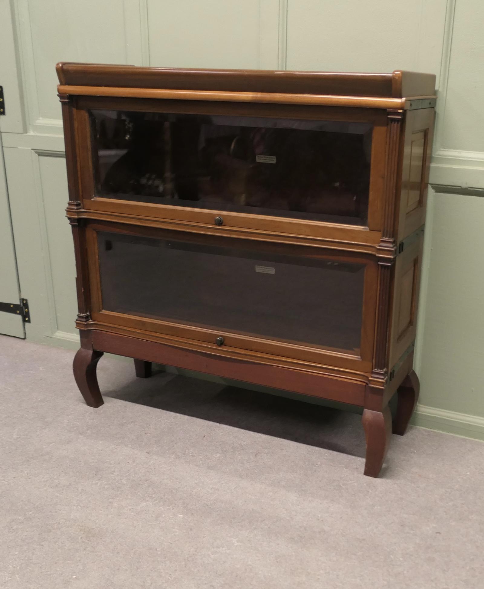Arts and Crafts 2 Stack Globe Wernicke Bookcase or Filing Cabinet This is a good quality Walnut Bookcase by Globe Wernicke, both sections have a glazed up and over door, and it is set on chinoiserie style legs The Bookcase is in good sound condition it is 38” high, 37” wide and 12” deep TDG93