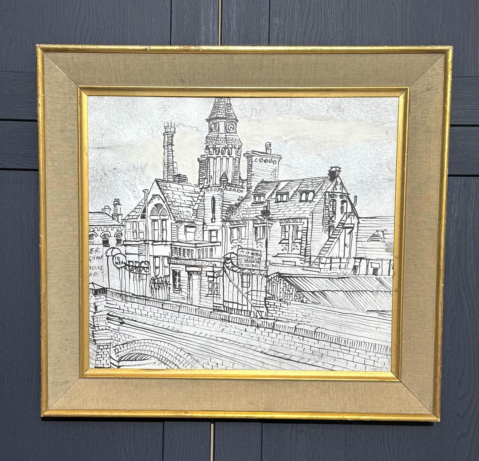 Purchased from the estate of Fred Yates (1922-2008with label verso and titled Eastcoft, Nottingham. Pen on board with signature bottom right and presented in a gold and linen frame.